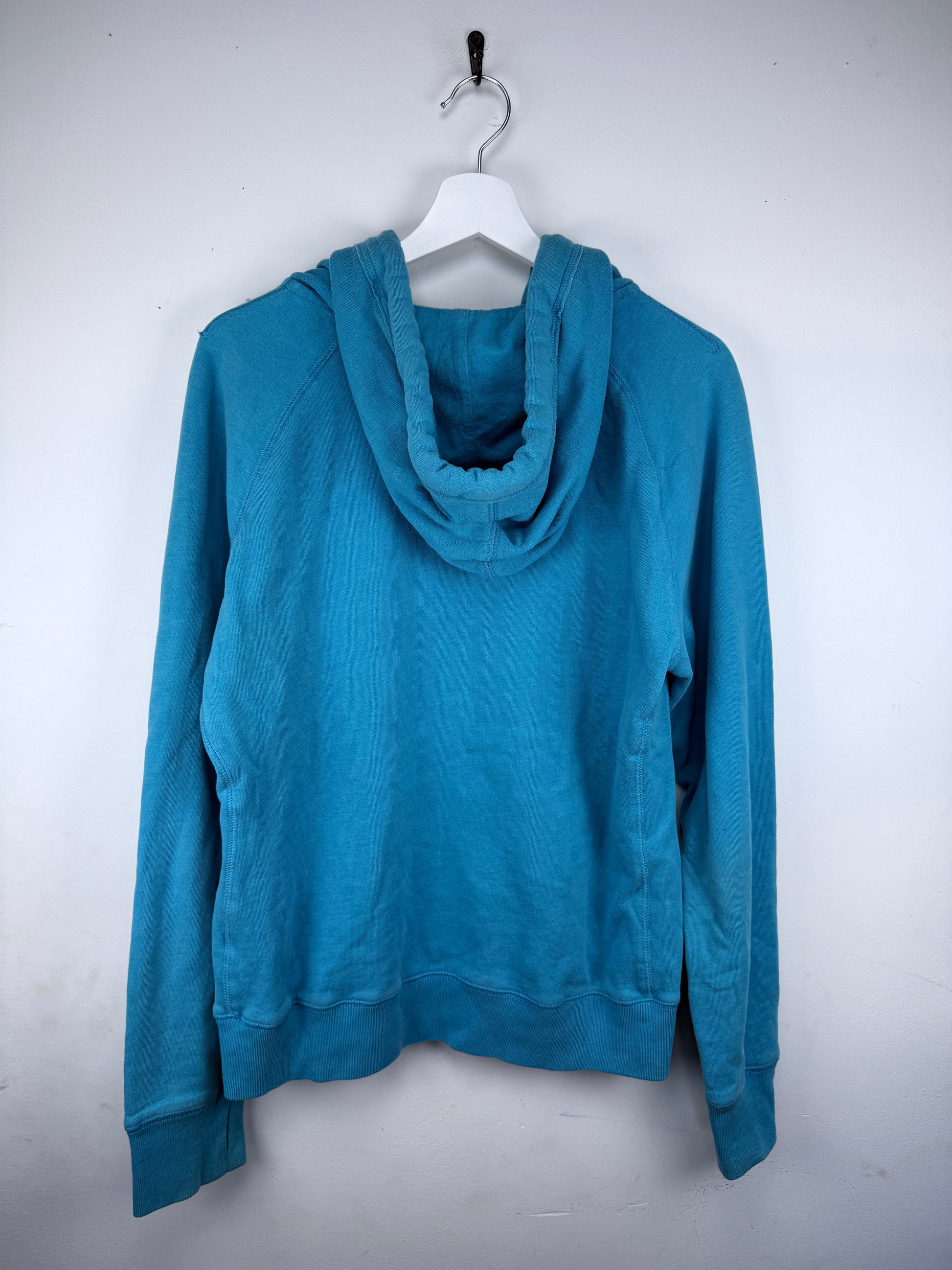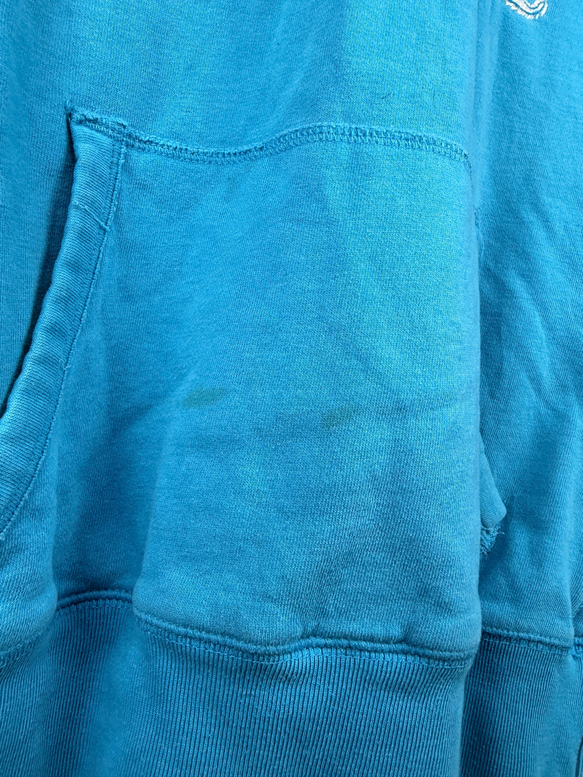 Dieser gemütliche Vintage Hoodie in frischem Türkisblau bringt echten College-Vibe in deinen Kleiderschrank. Das auffällige "Campus Crew" Front-Stitching in Off-White verleiht dem Hoodie einen authentischen Look.
