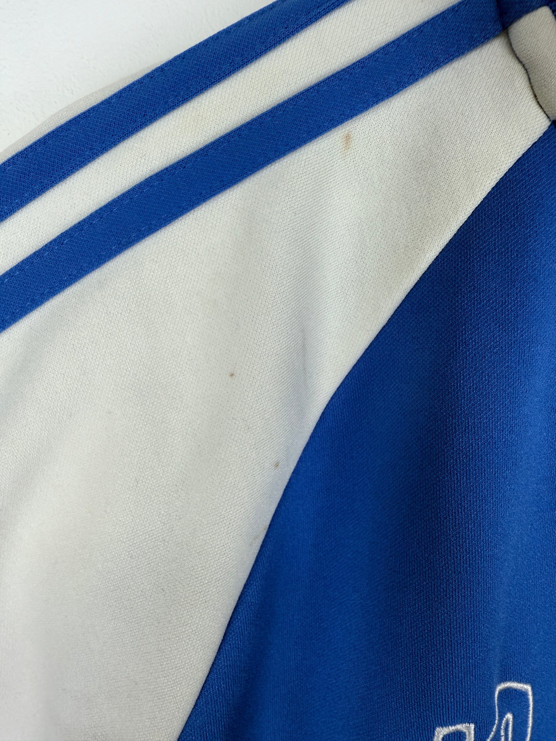 Authentische Italien Track Jacket im Retro-Look mit legendärer Nummer 10. Klassisches Design in Azzurro-Blau mit weisen Kontrastärmeln und Streifen. Auf der Brust und auf dem Rücken das Italien Wappen, auf dem Ärmel ein weiterer Italien-Patch ein Must-Have für Fans der Squadra Azzurra und Vintage Sportswear-Liebhaber.