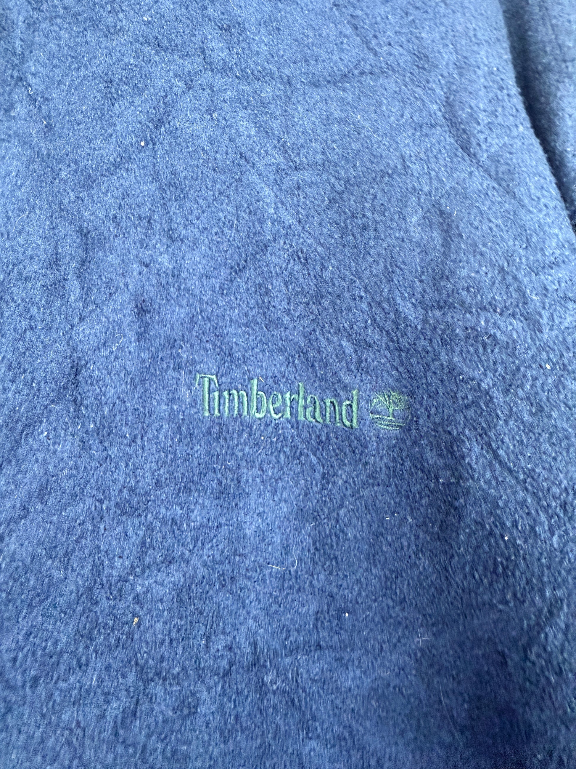 Seltene reversible Timberland Jacket im 200er-Style. Zwei-in-Eins-Design: eine Seite in cleanem Dunkelblau mit dezent gesticktem Timberland-Logo, die andere Seite als wattierte Steppjacke für Extra Wärme.