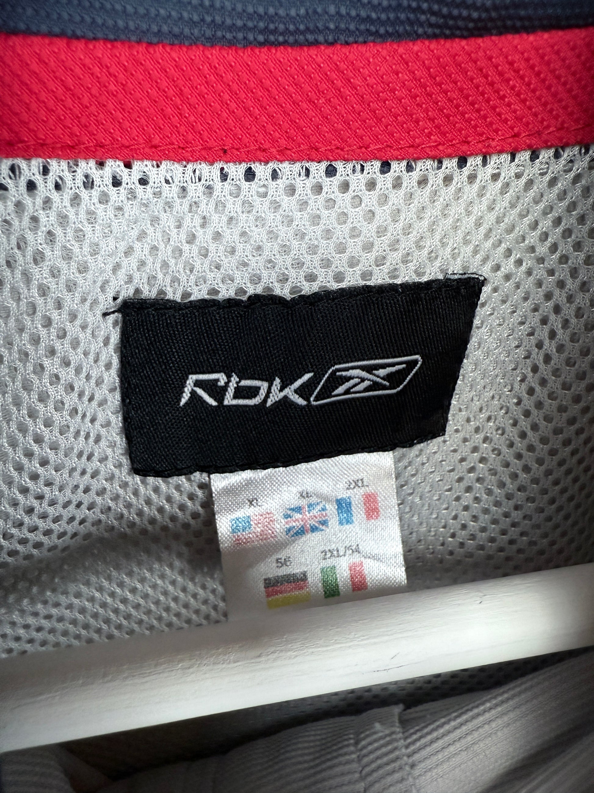 Originale Wales Rugby Union (WRU) Team Jacket von Reebok aus den frühen 2000ern. Hellgrau mit dunkelgrauen und roten Details, besticktem WRU-Logo auf der Brust und Reebok-Logo. Klassischer Zip-Up Style mit Stehkragen